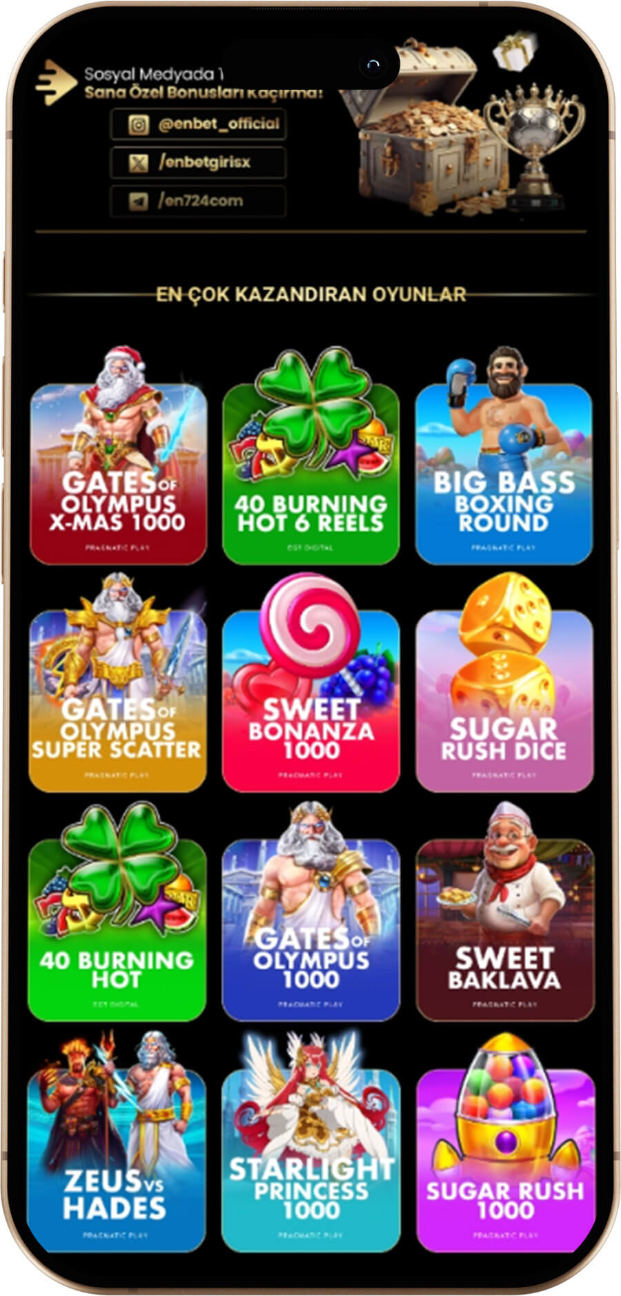Enbet’in zengin slot koleksiyonunda her temadan ve özellikten oyun bulmak mümkündür. En çok tercih edilen oyunlardan bazıları: