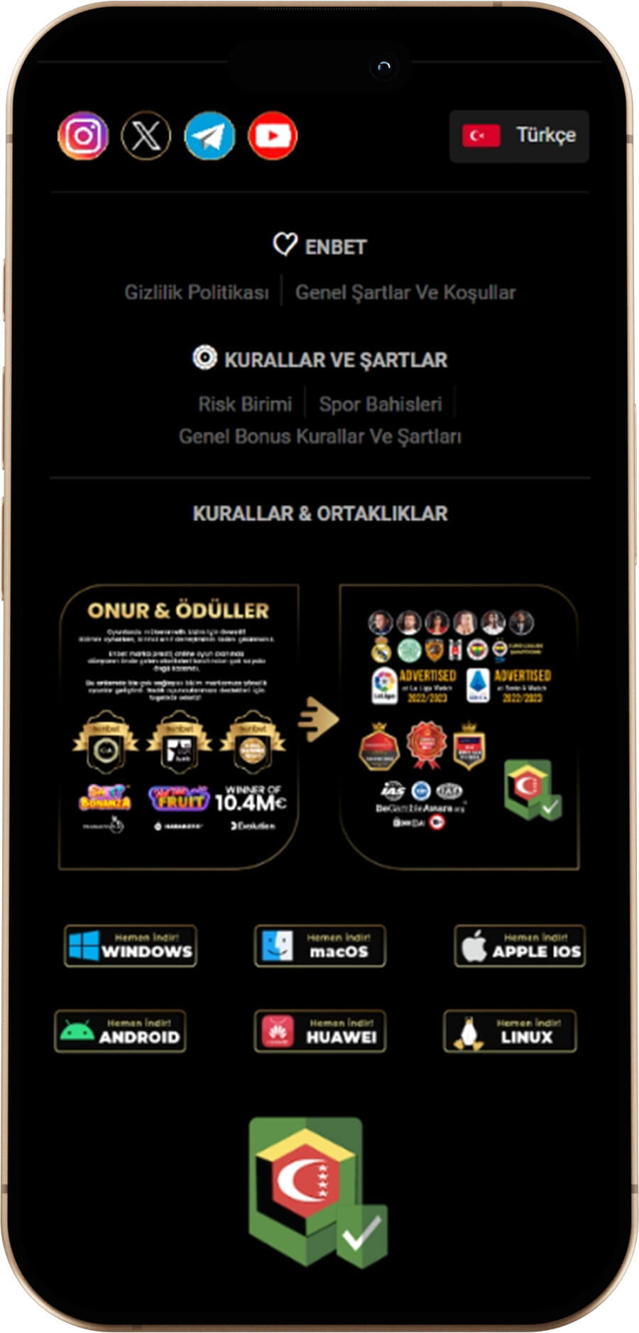 Herhangi bir uygulama indirmeye gerek kalmadan, akıllı telefonunuzun veya tabletinizin internet tarayıcısını açıp Enbet’in güncel adresini yazarak mobil siteye anında erişim sağlayabilirsiniz. Web sitesi, cihazınızın ekran boyutuna otomatik olarak uyum sağlayacak şekilde tasarlanmıştır.